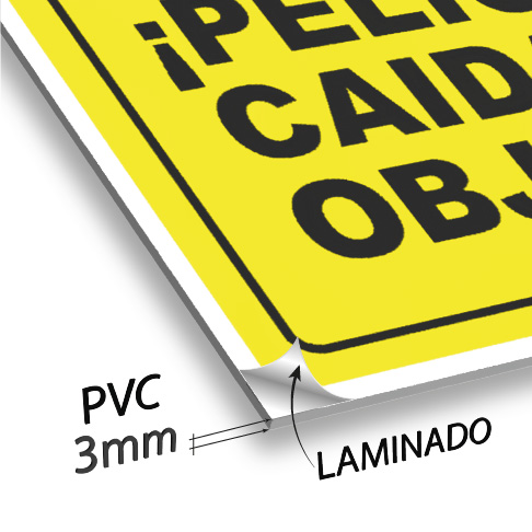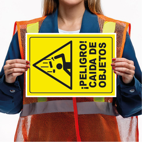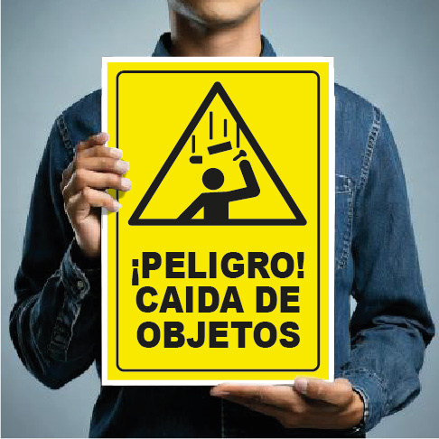 Señaletica – Caida de objetos, placa de pvc 3mm + vinil impreso laminado.