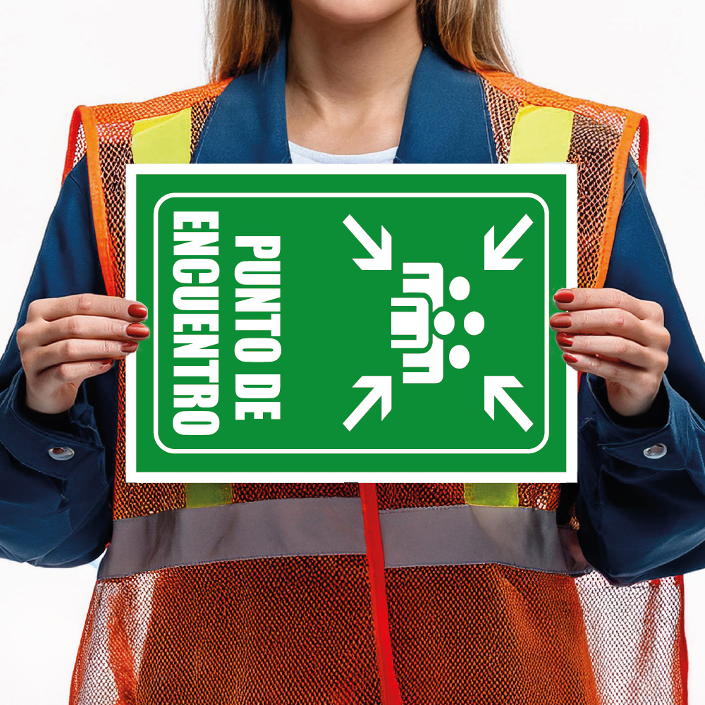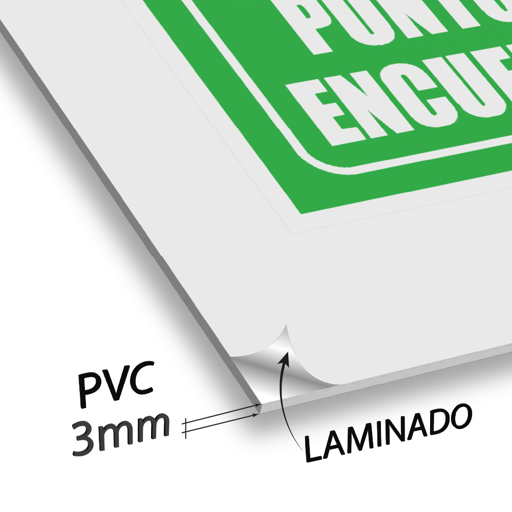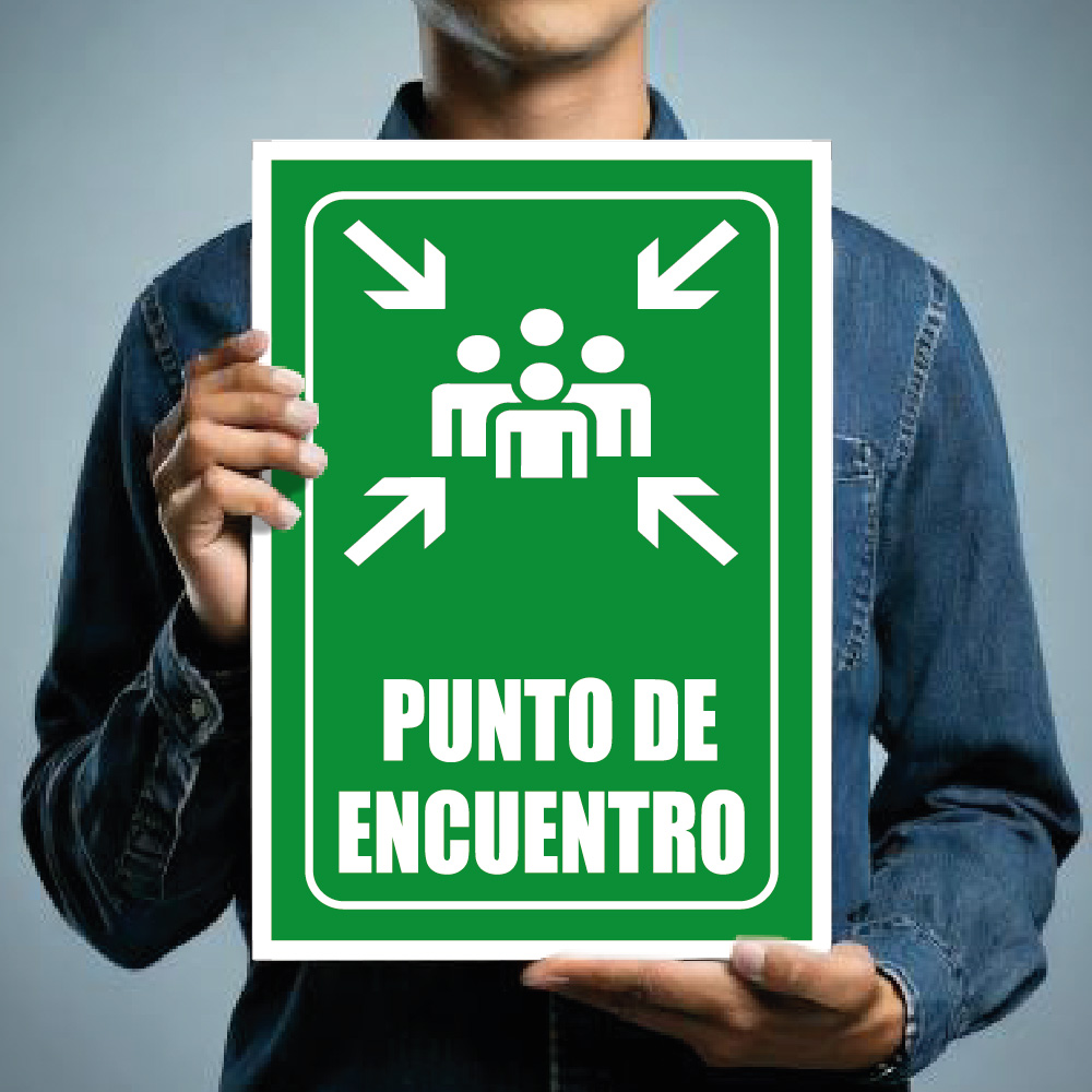 Señaletica – Punto de encuentro, placa de pvc 3mm + vinil impreso laminado.