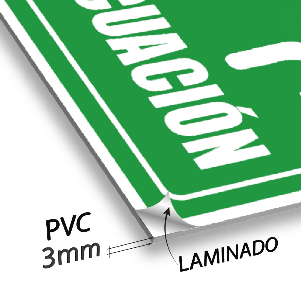 Señaletica – Ruta de evacuación, placa de pvc 3mm + vinil impreso laminado.